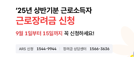 2025 상반기 근로장려금 신청기간은 9월 1일부터 9월 15일까지 단 15일간 진행됩니다.