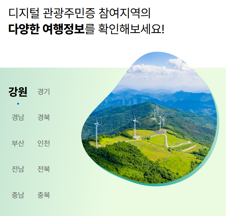 국내여행 지역의 디지털 관광주민증을 발급받아 지역 혜택을 받을 수 있는 서비스, 많은 혜택이 기다리고있어요!
