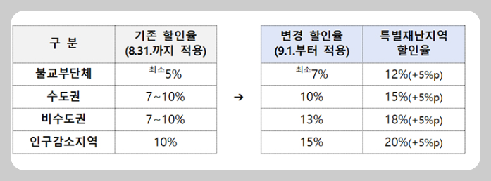 - 2025년 9월부터: 7% ~ 15% (전국 공통)