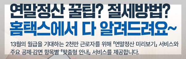 11월~12월에는 홈택스 ‘연말정산 미리보기’ 서비스를 통해 예상 세액공제를 미리 확인할 수 있습니다.