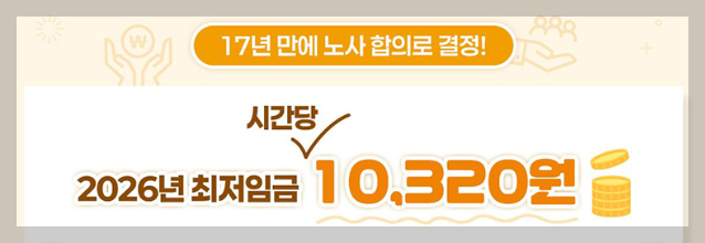 2026년 시간당 최저임금은 10,320원으로 확정되었습니다. 이번 최저시급 인상은 17년 만에 노사 합의를 통해 이루어졌다는 점에서 노동시장에 중요한 전환점이 됩니다.