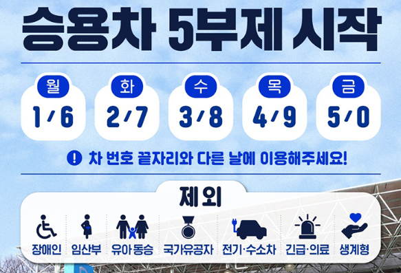 환경과 경제를 동시에 지키는 선택, 차량 5부제 시행 제대로 이해하고 대응하시기 바랍니다.