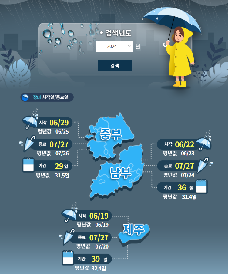 기상자료개방포털[기후통계분석:통계분석:장마]
