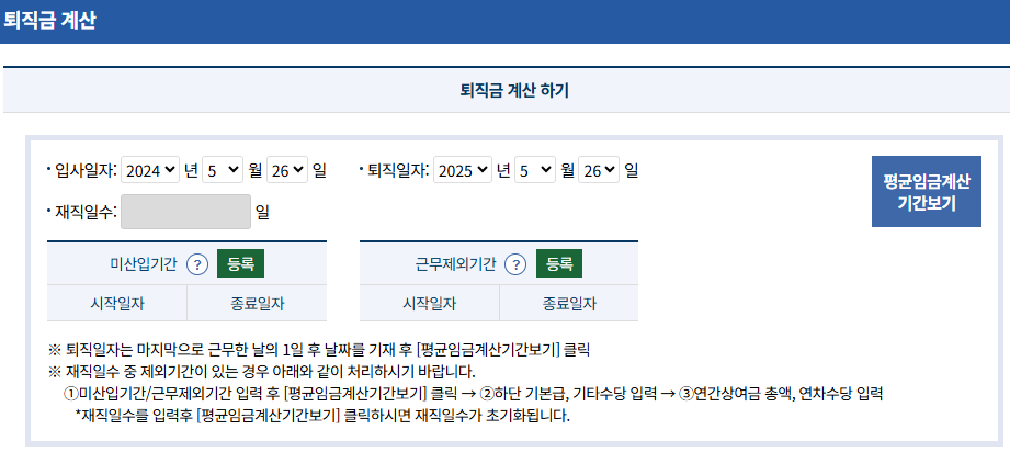 고용노동부 퇴직금 자동 계산기
